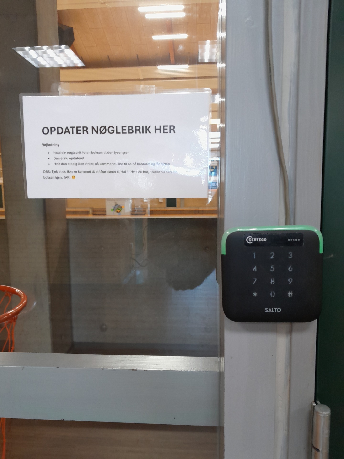 OBS: Tjek at du ikke er kommet til at låse døren til Hal 1. Hvis du har, holder du bare brikken på boksen igen 😊